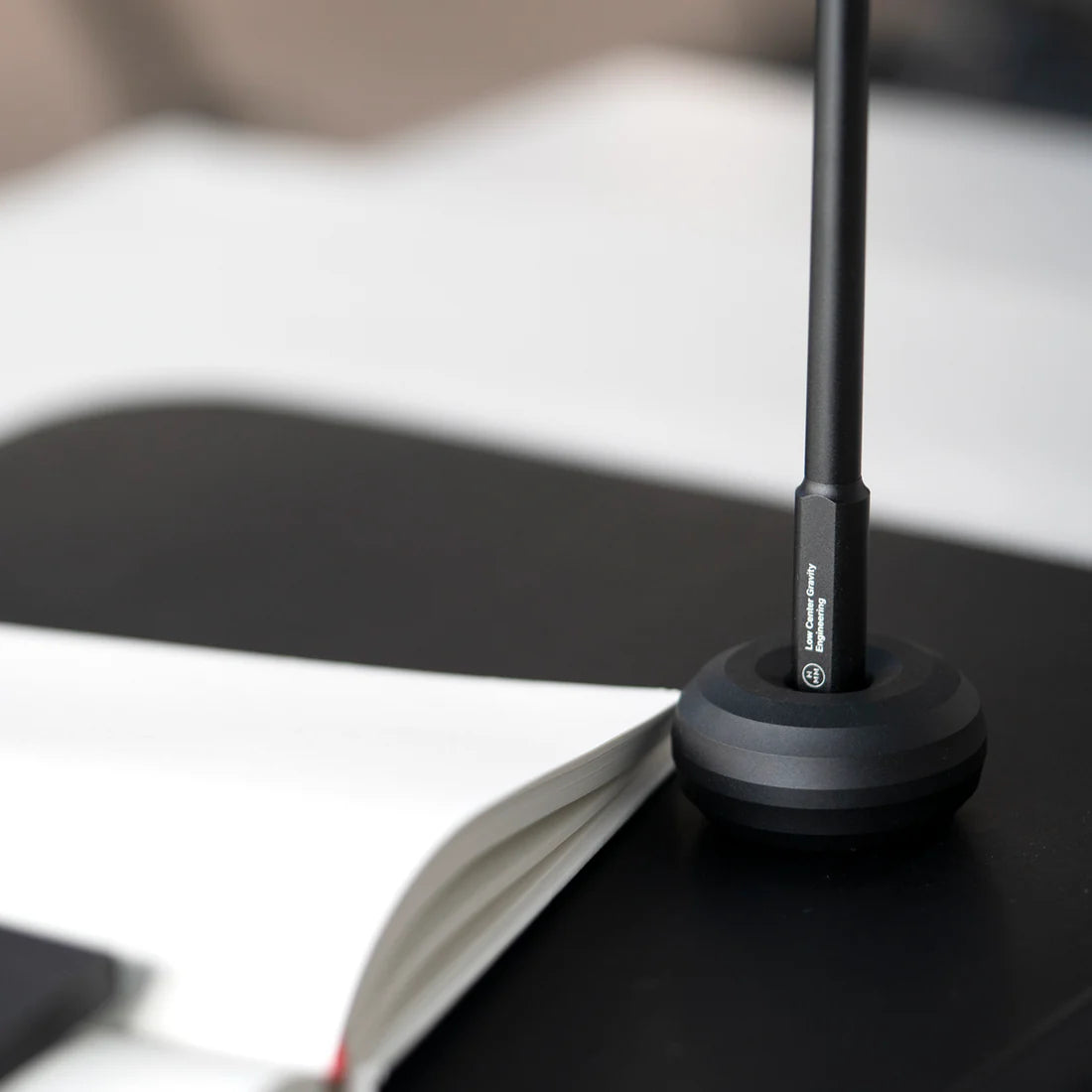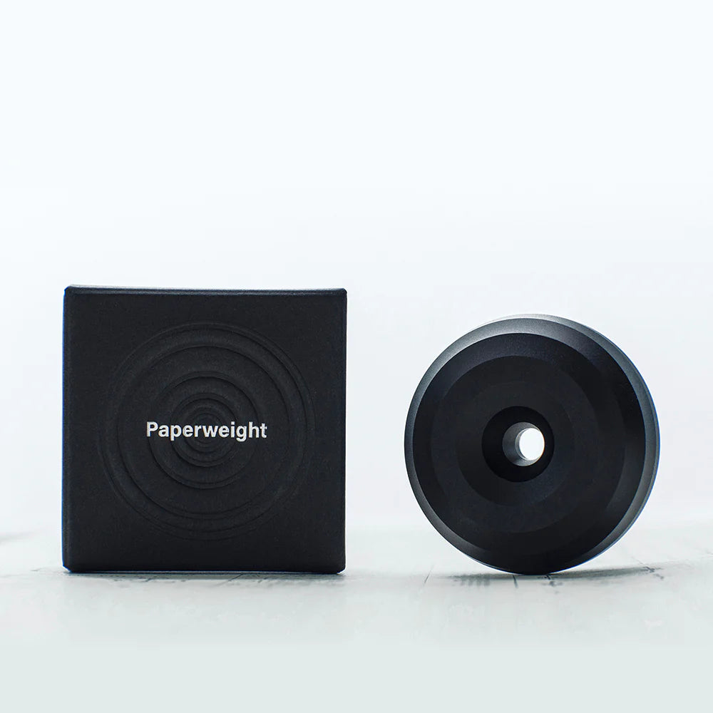 Paper weight is also the pen holder. This donut-look tool features the 12 bevel faces commonly seen in HMM classy work series. It is fully made of aluminum alloy for a firm grip. Combining with a pen, it turns into a unique beautiful accessory with its voluminous quality. Free your thoughts anywhere anytime with this stunning company.